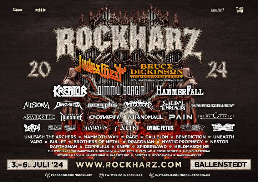 Es war auch irgendwie klar, das das Rockharz wieder in kürzester Zeit ausverkauft war, bei den ganzen Bands die diesmal das Infield zum Beben bringen werden wie Alestorm, Amaranthe, Amorphis, Avatarium, Benediction, Brothers Of Metal, Bullet, Callejon, Coppelius, D’Artagnan, Defects, Dirkschneider, Dominum, Draconian, Dying Fetus, Dynazty, Faun, Gutalax, The Halo Effect, Hammerking, Hatebreed, Heldmaschine, Hypocrisy, Kärbholz, Kanonenfieber, Kissin‘ Dynamite, Knife, Leauge of Distortion, Lordi, Mammoth WVH, Massive Wagons, Mystic Prophecy, Nakkeknaekker, Nanowar of Steel, Nestor, The Night Eternal, Nyktophobia, Oomph!, Orden Ogan, The O’Reillys And The Paddyhats, Pain, Parasite Inc., Power Paladin, Rage, Schandmaul, Soilwork, Spidergawd, Stormseeker, Suicidal Tendencies, Unearth, Unleash The Archers, Van Canto, Varg, Vogelfrey.