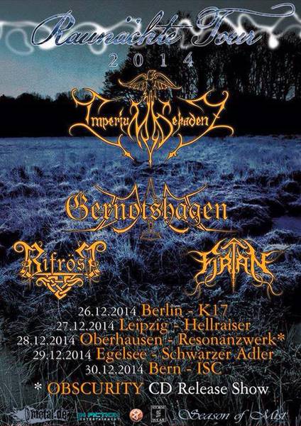 26.12.2014 - Berlin @ K17 27.12.2014 - Leipzig @ Hellraiser 28.12.2014 - Oberhausen @ Resonanz (ObscurityRelease Show) 29.12.2014 - Egelsee @ Schwarzer Adler 30.12.2014 - Bern (CH) - ISC