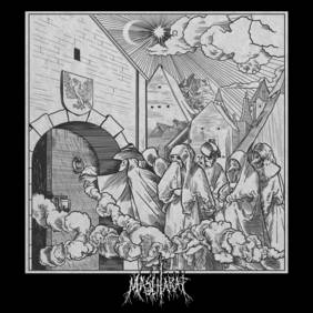 Viel ist über Mascharat nicht bekannt. Sie stammen aus Mailand und werden wohl so ähnlich wie „Maskerade“ ausgesprochen, was der Bedeutung des Namens nahekommt. Gerade im Black Metal ist es zur Zeit schwer angesagt, anonym zu bleiben, also sich hinter Masken zu verstecken, entweder als Anti-Egotrip oder aus purem Nihilismus. An der Stelle wäre interessant, ob Mascharat live auftreten und wenn ja, welche Art Maske sie dann tragen. Mehrere der Songtitel weisen auf Venezianische Masken hin und diese finden sich auch auf dem Cover wieder. Die beiden Hut-Bürger tragen eine „Bauta“, die Frau mit der Hand vor dem Mund steht für „Mora“ (bzw. Moretta) und die Schnabelmasken der Pestdoktoren („Médecin de Peste“) haben die meisten wahrscheinlich schon mal irgendwo gesehen. Das prägnante Stadtwappen am Tor gehört übrigens auch zu Venedig.
