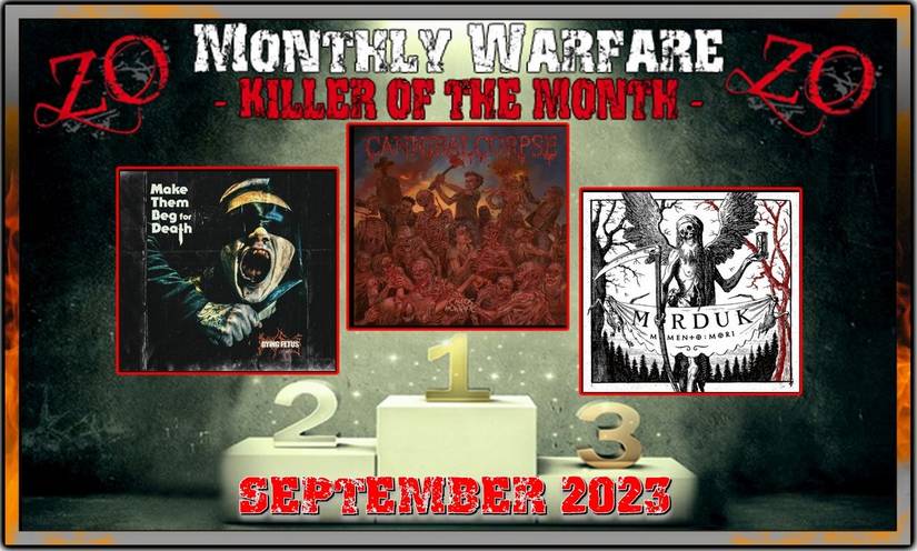 Man merkt, die Festival Saison ist vorüber und die Plattenfirmen „scheißen“ uns mit hoch qualitativem Material zu, so dass wir 24 Scheiben in der engeren Wahl für unseren Monthly Warfare hatten. Durchgesetzt haben sich die üblichen Verdächtigen: Cannibal Corpse, Dying Fetus und Marduk, die allesamt verdammt geile Alben aufgelegt haben. Doch auch die Plätze dahinter stehen den an vorderster Front stehenden Platten in nichts nach.