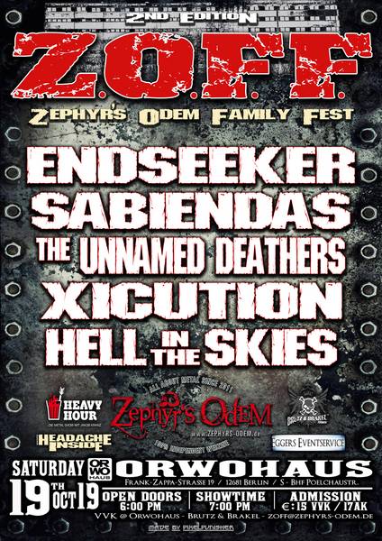 Wir Ihr vielleicht wisst wurde das Z.O.F.F ins Leben gerufen, um unseren musizierenden Redakteuren eine Plattform zu bieten, mit ihren Bands im Rahmen eines kleinen Festivals aufzutreten und um mit der Redaktion und Freunden zu feiern. Da wir aber nun nicht unbegrenzt Bands innerhalb von Zephyr’s Odem haben, haben wir die ganze Sache ein wenig erweitert und laden zur zweiten Auflage ebenfalls Bands ein, mit denen uns eine Freundschaft und eine tolle Partnerschaft über die ganzen Jahre verbindet und wir glauben, Euch ein tolles Gesamtpaket geschnürt zu haben. Und ja, zwei Bands gibt es noch, die definitiv im nächsten Jahr am Start sein werden. Hier die Teilnehmer der zweiten Sause: