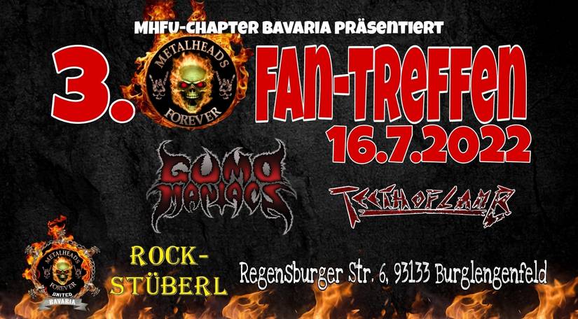 Zurück zum Bericht vom 3. Fantreffen des MHFU Fanclubs. Flo, seines Zeichens, Social Media Beauftragter des Fanclubs und Sänger von Mysterica, erkor recht früh im Jahr das Rockstüberl in Burglengenfeld in der Oberpfalz in Bayern, als den Standort des Treffens aus. Als Termin wurde der 16.07.2022 festgelegt und ebenso früh, standen die GUMO MANIACS als Liveact fest. Für mich als Thrash Metal Maniac, war somit frühzeitig klar, dass dieser Date fest im Kalender verankert wurde.