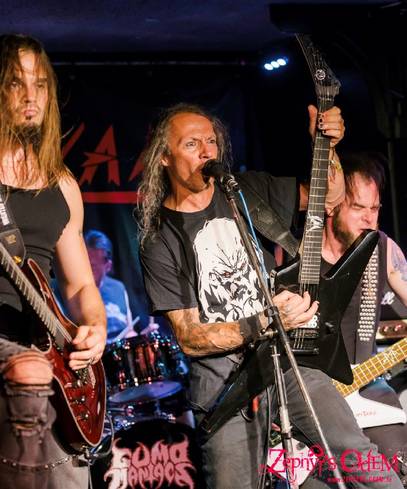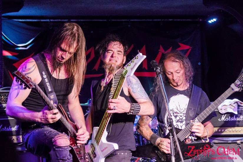 Mit ihren fünf Alben und ihrer neusten Live Scheibe „Live Tales Of Terror“ von 2021, unterstreichen sie auch ihr Live-Können, um ihren Ausnahmegitarristen und Sänger Gumo, auf Polycarbonat. Ihr Set wechselte sich ab zwischen hyperschnellen Nackenbrechern und Midtempo Groovern der Marke „Legions Of Death“. Es fanden jedenfalls zu allen schnelleren Songs, wie z. B. „Invert The Cross“ oder „Nation Of Evil“ wilde Moshpits statt, die den Schweiß so richtig zum Laufen brachten. Selbst im Sitzen bangte Da Helli, geschützt von Dannerl, nach bestem Können mit. Zu ihren Hit „Maniac Metal“ als offiziell letzten Song des Set, gab es noch einen fetten Mitsingteil, der sogar zwischen weiblich und männlich aufgeteilt wurde. Es kreischten einfach alle mit.