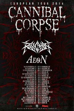 Im Zuge des Releases ihrer noch unbetitelten neuen Scheibe, die irgendwann im Spätsommer erscheinen wird, haben die Kannibalen bereits jetzt ein paar Tourdaten veröffentlicht und nehmen auf ihrer Rundreise Revocation und Aeon noch mit. Ein Leckerbissen. Hier erstmal die Gastspielorte im deutschsprachigen Gebiet: