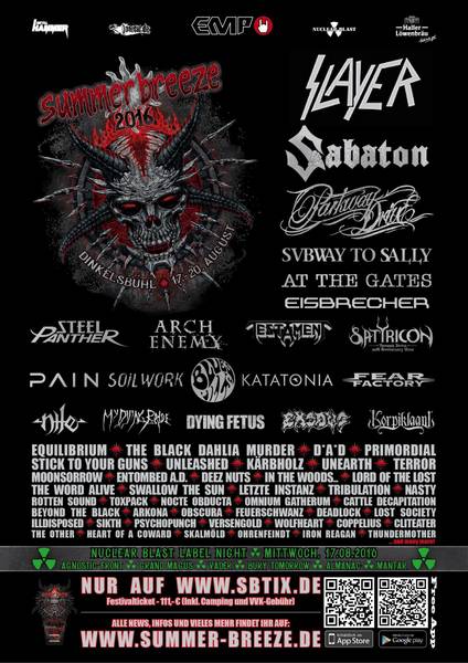Sonnengeballer wie Reaktorbrennstäbe, dazu fette Gewitterschauer...Wacken? Nein, Dinkelsbühl zeigte sich in diesem Jahr von seiner durchwachsenen Seite, was die Leute allerdings nicht davon abhielt, das Summerbreeze mächtig zu rocken und alle Bands gnadenlos abzufeiern. Mittendrin Marky und Schrod, die nun endlich von diesem Event ausführlich berichten.