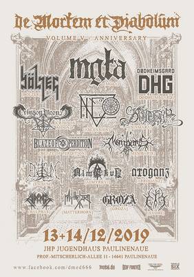 Auch 2019 durften sich wieder einmal Freunde der dunklen Kunst darauf freuen, kurz vor dem so hübschen und besinnlichen Weihnachtsfest eine ordentlich Schippe Wahnsinn, Wut und Dreck in seiner musikalisch vielleicht schönsten Form in die Ohren geschüttet zu bekommen. Denn das De Mortem et Diabolum bot seinen Fans erneut an zwei Tagen ein sehr ansehnliches und mehr als nur gut hörbares Billing handverlesener Bands. Vor allem der Samstag traf so stark meinen musikalischen Nerv, dass sogar ich fast einem Overload erlang, da ich einfach so herrlich bedient wurde. Aber fangen wir vorn an, das heißt beim Freitag, dem 13.