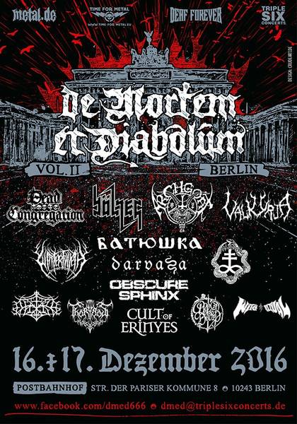 Da lud die Hauptstadt noch kurz vor Jahresende zur schwarzen Sause höherer Güteklasse und wir – wie von einem Fluch heimgesucht – verpassten den Beginn beziehungsweise sogar den kompletten zweiten Tag. Während Schaacki am Freitag auf dem Weg von Schwerin nach Berlin so manchem LKW-Fahrer fürs „Elefantenrennen“ gern mit einem gezielten Tritt gen Gesäß gedankt hätte, ward Marlen von der Hexe geschossen, sodass sie leider kurzfristig für den Samstag ganz ausfiel. Doch zum Glück konnte unser Schwarzheimer für die zwei verpassten Bands an Tag 1 noch Infos von einem Freund einholen, sodass ihr zumindest vom Freitag ein komplettes Bild bekommt.