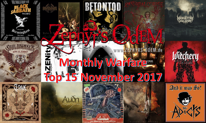 Huhu, da sind wir wieder! Der November ist Geschichte und die von uns bereits im letzten Monat angedeuteten Knallerscheiben haben es tatsächlich auch in den Monthly Warfare November 2017 geschafft. War aber zuweilen ein hartes Stück Arbeit, denn zum Ende hin hätten es 26 CDs in die Top 15 schaffen können. Ausgewählt haben wir dann zugunsten einer musikalischen Artenvielfalt, die ihr ja von uns gewohnt seid.