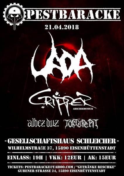 Für schlanke 12€ im Vorverkauf gibt es Tickets zu diesem bärenstarken Event, wo die Karte an der Abendkasse 15€ zu Buche schlagen wird, vorausgesetzt es wird noch welche geben, was ich mir bei diesem famosen Billing kaum vorstellen kann. Also…hin da und bei Gelegenheit gleich in Polen tanken und Kippen mitnehmen. Aloha!