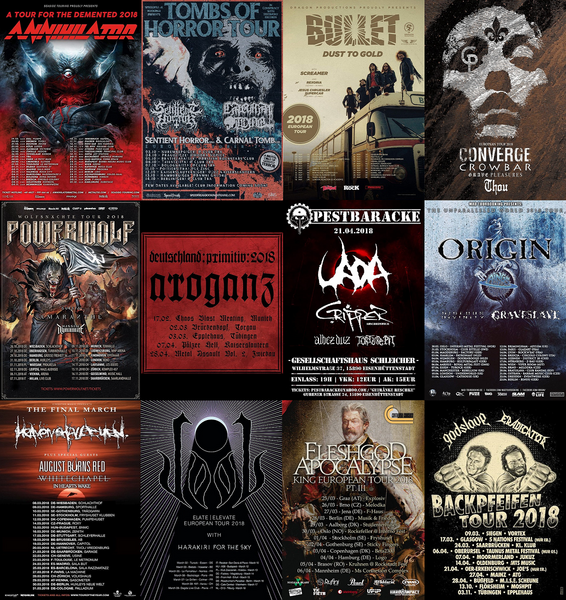 Scheiß die Wand an! Erneut begeben sich eine ganze Menge an Musikern auf die Reise, um uns Verrückten die Abende zu versüßen. Und was für Kaliber sich auf den Weg machen. Heaven shall burn beispielsweise, die generell für Leibesertüchtigungen in den Hallen sorgen, oder die Senkrechtstarter von Dool, die zusammen mit Harakiri for the sky Dunkelheit über uns hereinbrechen lassen werden.