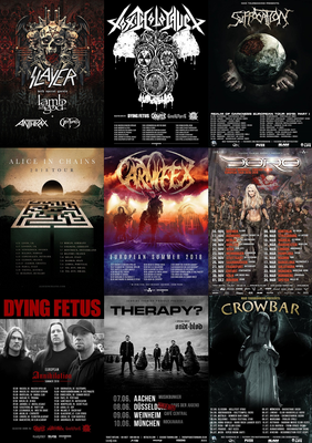 Natürlich gibt es auch etwas Gediegeneres wie Therapy?, die Altmeister von Alice in chains oder die Doom Lawine Crowbar. Der Thrash Fan freut sich auf die Rundreise von Toxic Holocaust und die Metal Mutti Doro wird im Herbst die Bühnen entern, wobei wir in der glücklichen Lage sind, das Berliner Konzert offiziell präsentieren zu dürfen. Die obligatorische Verlosung kommt dann zu Zeiten. War noch was? Slayer? Achja...dazu sollte wohl längst alles gesagt sein.