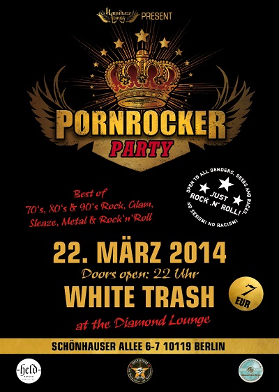 veranstalten Deutschlands Pornrocker No 1 eine Party, die ihresgleichen sucht: 100 % Glam, Hardrock, Metal, Rock 'n' Roll, dazu Burlesquetänzerin Lady Jay aus Schwerin, die fabelhafte Djane Anita Drink, Dragqueen-Hostess Amanda Cox, und als besonderer Live Act der Partyreihe werden die Glamrock-Newcomer