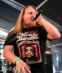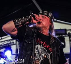 Nach einer extrem langen Anfahrt und teilweisem parken auf der Autobahn (laut Schmier), trafen die Headliner des ersten Abend dennoch pünktlich ein, legten die Patronengurte an und begannen mit "Thrash 'til death" rabiat in den Set, bei dem das nun prall gefüllte Zelt mächtig steil ging. Kein Wunder, denn ich habe die zerstörerische Kraft aus Baden Würtemberg schon lange nicht mehr so stark gesehen. Tight, auf den Punkt und extrem heavy holzte das Trio den wunderschön um das Gelände liegenden Wald nieder. Und egal welcher Hit aus dem sch(m)ier unendlichen Repertoire der Thrash Legende ins Zelt geschleudert wurde, die Banger nahmen diese Steilvorlage gekonnt auf und verwandelte zielsicher. Das war großartig und verlangt nach mehr! Wann kommen die Jungs endlich mal wieder auf Deutschland Tour???