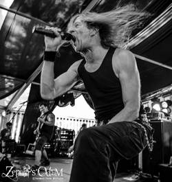Nun öffnete sich das Ei vom Planeten LV-426 und der entsprechende Parasit verließ seine Hülle, um sich an den Gesichtern der Besucher festzusaugen. Allerdings liegen die Gemeinsamkeiten zwischen dem Geschöpf aus dem gigerschen Paralleluniversum und den Deathern aus Sachsen lediglich beim Namen, denn weder kann dieses schleimige, spinnenartige Wesen Todes Metall spielen, noch können die Herren Musiker einen Parasiten einpflanzen. Vielleicht noch einen Ohrwurm, denn davon gab es genug. Lediglich der Aktionsradius auf der Bühne war etwas gering, was vielleicht auch an den ständig steigenden Temperaturen lag. Ansonsten ein runder Auftritt, der durchaus Appetit auf mehr macht.