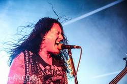 Parallel zur gestrigen Anreise von Destruction standen Holy Moses ebenfalls im Stau und erreichten das Gelände auch erst relativ spät, doch professionell wie eh und je schien das Sabina und ihre musikalischen Begleiter nicht die Bohne zu jucken. Im Gegenteil: Noch kurz vor dem Auftritt machte die unfassbar sympathische Fronterin mit Jedem der wollte Fotos, plauderte vollkommen ungeniert und schien mehr als tiefenentspannt. Lediglich kurz vor dem Auftritt schien es ein paar technische Probleme zu geben, von denen man während des herausragenden Gigs aber nicht viel bemerkte. Eine großartige Setlist, wobei mich persönlich natürlich Songs der "Finished with dogs" Ära der Kategorie "Current of death" vollkommen wegpusteten. Sabina war souverän, mehr als gut aufgelegt und performte auf Deibel komm raus. Das war Champions League und der Beweis dafür, das man mit Holy Moses immer wieder rechnen muss. Fantastisch!