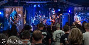 Nun begannen die "P" Festspiele, die von den Aalener Todesbleischwadron Parasite Inc. eröffnet wurden und die sich durch die Gehörgänge der Anwesenden durchfraßen, wie Rainer Callmund durch seine vierte Frühstückshaxe. Ich kannte die Jungs bislang nur von ihrem brutalst guten 2013er Scheibchen "Time tears down" und war aufgrund des hier gesehenen und gehörten mehr als begeistert! Auch Thor, der die Jungs bereits beim Metal Storm in Luzern ausgiebig fotografieren durfte, wogte sein in Ehren ergrautes Haupt und strich sich mehrfach anerkennend durch seinen Bart, was einem Ritterschlag gleichkommt. Eine der ersten großen Überraschungen für mich und definitiv einer der großen Gewinner in diesem jahr!