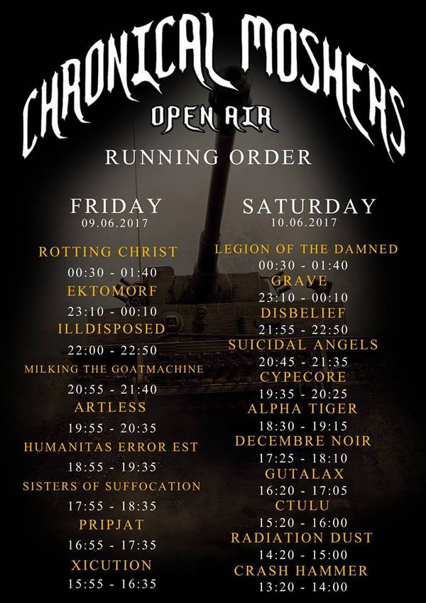 Vorab die wichtigste Information: Das diesjährige Chronical Moshers ist restlos ausverkauft! Gut so, denn damit beweist die Fanbase Treue zu einem der besten kleinen Festivals in Deutschland, wo Fans noch von Fans bedient werden und sich Gleiches zu Gleichem gesellt. Wir sind nun das vierte Jahr in Folge mit von der Partie und freuen uns schon jetzt wie Bolle uffm Milchwagen auf zwei erneut großartige Tage mit genialer Mucke, freundlichen Menschen, reichlich gerstenhaltigen Getränken und Spaß pur! Ups, das war ja schon fast ein Fazit zu diesem Vorbericht…