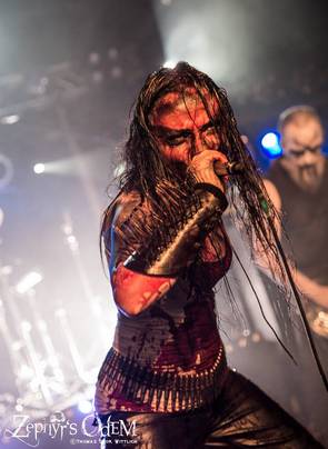 Humanitas Error estkamen dann die nächsten auf der Bühne. Die Leipziger Black Metal Kombi fällt sofort mit zwei Sängern auf - und zwar zweien, die absolut was davon verstehen, was sie dort tun. Die blutverschmierte Sängerin "S Caedes" stand die meiste Zeit in die Ferne starrend, singend dort wie ein Mahnmal während Sänger Ghoul den aktiveren Teil der Performance übernahm. Instrumental brachten sie sehr guten melodischen Black Metal, mit außergewöhnlich guten Drums die sich vor Dark Funeral und Co. nicht verstecken müssen.[mt]