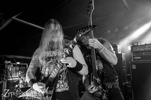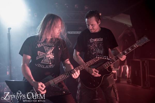 Endlich mal wieder Evocation!!! Was habe ich mich darauf gefreut, endlich meinen alten Kumpel Marko Palmen und seine Radaubrüder wiederzusehen, wobei leider Gitarrist Simon Exner und Schlagwerker Janne Jaloma anderweitige Verpflichtungen hatten und dementsprechend nicht zur Verfügung standen und trotzdem von ihrer Ersatzleuten mehr als amtlich vertreten wurden. Es war ein absolutes Fest, bei dem die Bollo-Attitüde von Basser Gustaf Jorde und der bellende Gesang von Frontmann Tjompe ein wahrer Augen und Ohrenschmaus war. Ein Hit jagte den nächsten und spätestens bei „Reunion in war“ war es auch um mich geschehen und ich verbrachte den Rest dieses unfassbar großartigen Gigs fast in kniender Position. Der Sound drückte einem den Restalkohol des Vortages aus dem Wanst und die Meute vor der Bühne feierte die Schweden nach allen Regeln der Kunst ab. Die Fäuste gingen nach oben, die Matten wurden geschüttelt und auf der Bühne wurde ein Paradebeispiel skandinavischen Todesbleis geboten. Für mich eine der besten Bands der letzten Jahre auf dem CMOA…auch wenn mir Thor mit der nächsten Band sicherlich widersprechen wird…