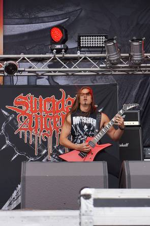 Richtig gespannt war ich auf die griechische Antwort auf Slayer, die mit ihrem am Vortag veröffentlichten Album „Years of aggression“ einen richtig fetten Bolzen abgeschossen haben und diesen nun live präsentierten. Es wurde ein Lehrstück in Sachen Thrash Metal, denn die Suicidal Angels hatten extrem Bock, waren nur am rumrennen und fiedelten sich dabei die Falten aus dem Sack. Tolle Bühnendeko, ein rasiermesserscharfer Sound und eine Band in absoluter Spiellaune, die die neuen Songs ebenso brachial präsentierten, wie älteres Material, wobei leider aber mein Lieblingssong „Moshing crew“ außen vorgelassen wurde. Doch „Bloodbath“ konnte entschädigen, wie auch die gesamte Show, die mächtig Laune auf mehr machte. Freu mich auf eine hoffentlich bald anstehende Tour!