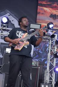 Um 12 mit einer fetten Prise Slam Death weiterzumachen ist aber auch nicht unbedingt übel. Vulvodynia ist mal wieder so eine Band, bei denen man weder das Logo erkennen, sowie den Bandnamen beim ersten Mal fehlerfrei aussprechen kann, doch irgendwie reizte mich die Truppe alleine schon aus dem Grund, bislang erst ein oder zwei Bands aus Südafrika gesehen zu haben, ein Exotenbonus also quasi. Lohnte sich auf jeden Fall, denn die Truppe machte ordentlich Späne, Frontmann Duncan flitze wie eine angestochene Königskobra über die Bühne und Bassist Chris van der Walt hüpfte in bester Hardcore Manier über die Bühne. Der Sound war ebenfalls klasse und somit war das kleine Abenteuer für mich ein recht lohnendes, da die Jungs auch nach der Show einen mehr als sympathischen Eindruck hinterließen. Muss ich unbedingt auf dem Schirm behalten.