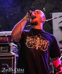 Einen richtigen Kracher hatten die Macher um Mario nun parat, denn Incantation sah ich letztmals irgendwann Mitte der Neunziger und war damals schon restlos begeistert. Doch bevor John McEntee und seine Horde die Bühne enterte, musste ich mir doch ein Schmunzeln verkneifen. Wo man bei manchen Bands nach vernünftigen Merch suchen muss, fuhren die Mannen aus Pennsylvania ein Angebot auf, welches C&A Konkurrenz machen könnte. 14 verschiedene Shirts! Großartig...und da man sich nicht entscheiden konnte, ließ man es ganz. Keine vernünftig durchdachte Aktion. Auf der Bühne hingegen gab es die volle Keule und Songs wie "Vanguish in vengeance", "Invoked infinity" oder das legendäre "The ibex moon" vom nicht minder genialen 94er "Mortal throne of nazarene" Album zünden wie Sau! Die Meute war gut in Schwung und feierte die Amis unentwegt ab. der hangar platzte fast aus allen Nähten und auch davor ging die Post ab. Fliegende Matten überall!!! Grandioser Auftritt, der Appetit auf mehr machte!!!!