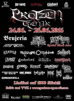 Eins ist mir immer noch schleierhaft: Seit Frontmann und Chronical Moshers Booker Jan „Grützer“ Singer zum Jahresende seinen Abschied bei Kali Yuga bekanntgegeben hat, spielen die Vogtländer einen legendären Gig nach dem anderen. Sei es letztes Jahr beim CMOA, im Vorprogramm von Illdisposed in Berlin an dem traurigen Tag, als unser aller Lemmy abberufen wurde, und nun hier, auf dem Holy Protzen Land. Ok, der Grützer hatte natürlich aufgrund seines beträchtlichen Umfangs anfangs arge Bedenken, was die auf der Bühne vorherrschenden Höllentemperaturen anbelangte, doch während des großartigen Gigs war davon (zumindest vor der Bühne) kaum was zu spüren. Im Gegenteil! Agil wie ein Panther stampfte der Sänger mit seinen Mitstreitern durch einen tollen Set und rechtfertigte den Slot auf dem POA 2016 mit Nachdruck. Überlegt es Euch nochmal mit dem Jahresende Leute!!! Toll war’s!
