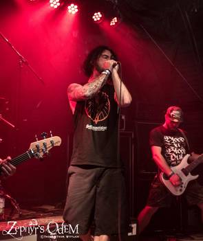 Nun wurde es im Wellblechpalast etwas voller, denn meine Lieblingssachsen von Purgatory sattelten die Hühner und spielten sich erneut den Arsch ab. Scheinbar scheint der Vierer keinerlei Verschleißerscheinungen zu zeigen, denn trotz der scheinbar immer weiter steigenden Temperaturen legten die Jungs einen ebenso energetischen Gig hin wie beim Chronical Moshers und hinterließen nur ein Häufchen qualmende Asche. Der Deatcvlt hatte Protzen fest im Griff und das Publikum dankte es ihnen mit einem kollektiven Ausrasten. Da flogen die Haare, der Schweiß floss in Strömen und es waren alle zufrieden. Muss so sein, oder? Lediglich die Tatsache, dass Basser Peter nach dem Gig eine Weile lediglich in Schlüppi durch den Backstage rannte, sorgte für etwas Verwirrung.