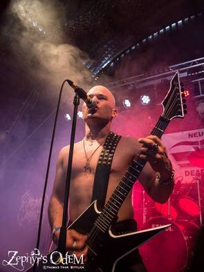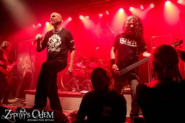 Die Österreicher interessierte auch kein bisschen, dass sie um 22:40 auf die Bühne sollten und überzogen maßlos, was Soundmann Jacky dazu veranlasste, laut über einen Bühnenmanager (er wählte zwar ein paar andere Worte, doch die lasse ich hier mal unausgesprochen) nachzudenken, der den Mannen aus der Alpenrepublik mal gehörig in den Arsch treten würde. Irgendwann schafften es dann die Mannen dann doch auf die Bühne und lieferten leider exakt den gleichen lahmen Auftritt ab wie ein paar Wochen zuvor. Wo war denn bitte die angekündigte Special Ritual Show? Viel gesehen habe ich davon nicht. Stattdessen gab es ein unentwegtes Stakkato und ausufernde Raserei, ohne jegliche Zeit zum Luftholen. Das kann durchaus mal angenehm sein, doch im Falle Belphegors weiß man, dass die Mannen auch ein paar langsamere Stücke im petto haben, die meist mehr knallen, als das permanent anhaltende Dauerfeuer, welches sie hier abbrannten. Ich hörte nicht wenige Stimmen, die von diesem Auftritt mehr als enttäuscht waren und sich stattdessen Benediction gewünscht hatten, deren Ersatz ja Belphegor waren. Erneut eine arme Vorstellung.
