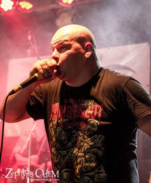 Ich hatte ja im Vorfeld ein klein wenig Bedenken, dass die massive Soundwand der Mannheimer von Moronic der Audiosound Crew Sorgen bereiten könnte, doch weit gefehlt! Ganz souverän verpassten die Jungs den auf der Bühne rumwütenden Deathern einen durchdringenden Klang und somit den Leuten vor der Bühne ein großartiges Klangerlebnis. Witzig ist das Gesamtbild der Band, bei der Jung und Alt todesbleiernd harmonieren und mit Clausi ein Brocken am Mikro steht, nach der sich jede Hardcore Band die Finger lecken würde…rein optisch gesehen. Leider war auch hier der Zuschauerzuspruch vor der Stage etwas überschaubar, was aber niemals mit den musikalischen Qualitäten des Quintetts in verbrindung gebracht werden darf, denn selbst am etwas abseits der Bühne gelegenen Bierstand wurde sehr positiv über das soeben Gehörte diskutiert und man kam fast einhellig zu dem Schluss, dass Moronic ziemlich dicke Eier haben.