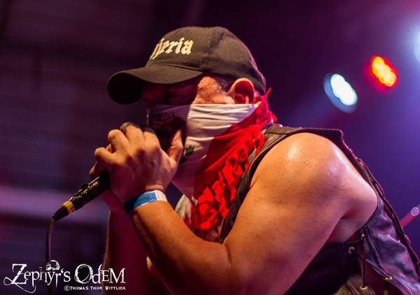 Eine kleine Sternstunde war nun auf dem Plan, denn mit Lividity erfüllte sich ein kleiner Traum von mir, denn ich habe die Trümmertruppe immer schon einmal live sehen wollen, doch irgendwie schrammte die Truppe aus Chicago immer an mir vorbei. Heute waren sie auch nur auf dem Vorbeiflug, denn nach dem Gig auf dem Protzen ging es sofort weiter nach Hamburg, um dort abends noch aufzutreten. Dennoch war von Hektik nichts zu spüren und die Jungs um Kultfronter Dave Kibler legten eine heiße Sohle aufs Parket und diese Vorlage wurde dankend angenommen. Die Fans klinkten aus und feierten die Amis gnadenlos ab. Es macht einfach unbändigen Spaß, der nunmehr in ihrem 23.Lebensjahr befindliche Truppe auf den Brettern zuzuschauen. Dazu noch ein Damphhammersound und fertig war der Lack. Darauf musste ich doch glatt ein alkoholfreies Weizen trinken…