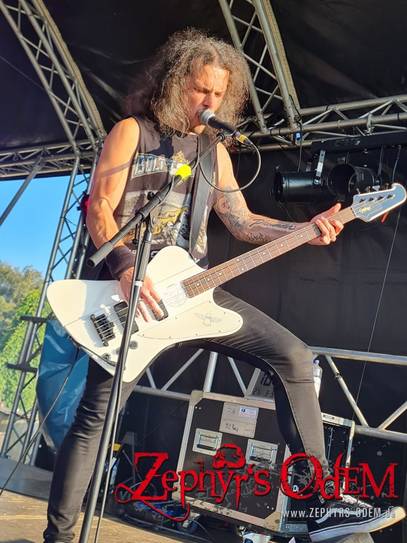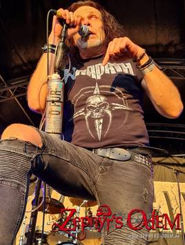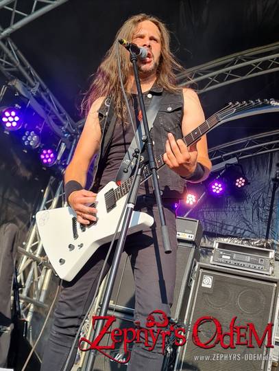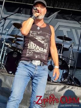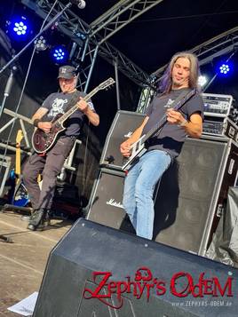 Natürlich waren, wie auch bei allen Bands an diesem Wochenende, einige kleine Patzer dabei, die das Ganze aber authentisch und ehrlich machten, Man muss einfach konstatiere, dass die Bands einfach froh darüber waren, endlich mal wieder vor Publikum auftreten zu können und vor allem zu dürfen und von daher solche Ausrutscher durchaus als charmant zu bezeichnen sind. Wie dem auch sei, Harmony dies konnte scheinbar lediglich bei meiner Frau nicht unbedingt überzeugen („Da kann man nicht drauf tanzen“), denn der Rest der auf dem Platz versammelten Metal Fans reckten anerkennend die Fäuste in die Höhe und unser aller Keksgrinder konnte danach endlich den Schluckmuskel aktivieren. Starker Auftritt, der mit der Hoffnung verbunden ist, nach nunmehr fünf Jahren endlich irgendwann mal ein neues Album der Truppe zu Gehör zu bekommen.