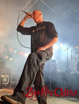 Das Publikum vor der Bühne hat sich nach dem Postmortem’schen Abriss deutlich reduziert, doch die Die-Hard Fraktion ließ sich dadurch aber nicht abschrecken. Hatte Soulburn eigentlich immer als etwas dunkleren Asphyx-Clon in Erinnerung und mich nie wirklich mit den Herren auseinandergesetzt. Was die Typen hier fabrizierten ging eher in eine moderne Bathory, Celtic Frost Schiene, das Erscheinungsbild von ex-Legion of the Damned Sechssaiter Twan van Geel, lässt gar Assoziation mit Primordial zu, fieses Gekeife, dennoch mit klarer Death Metal Kante. Auch der nun von Marcus Rödl eingetütete Sound war maßgeschneidert für diese unheilige Messe.