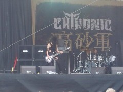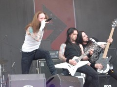 Chthonic aus Taiwan standen auf der Rock stage und es war mehr als erstaunlich, dass sich zu solch früher Stunde bei einer für Viele recht unbekannten Band schon so viele Leute einfanden. Kein Wunder, bekamen sie doch einen energiegeladenen Gig mit der bezaubernden Bassisten Doris zu sehen und zu hören. Es ballerte aus allen Rohren und der Dimmu Borgirangehauchte Black/Death Metal der Exoten verfehlte seine Wirkung nicht. Erstaunlich war, dass hinter der Schießbude scheinbar ein Aushilfsdrummer saß, der nach jedem Song erstmal nachlesen musste, was er zu spielen hatte. Merkte man aber überhaupt nicht, denn der Kerl machte seine Sache hervorragend, wie die gesamte Band. Schade nur, dass die Erhu-Künste von Sänger Freddy nicht herauszuhören waren, denn ich liebe dieses Instrument. Fazit: Das war richtig geil.