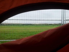 Bereits auf der Fahrt gab es Starkregen, Sturmböen und die Laune sank rapide, obwohl meine bessere Hälfte permanent die Parole ausgab: Das Wetter wird besser! Tja…Pustekuchen! Auf dem Platz angekommen war zwar das Wasser von oben weg, doch der Wind wurde heftiger.