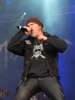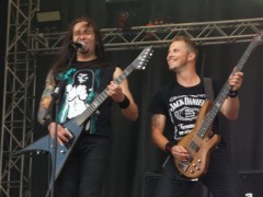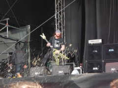 Da mir meine Knochen nun ganz schön wehtaten, gab ich mir Amon Amarthnur dezent vom Bühnenrand und war ein wenig entsetzt, wie unmotiviert die Wikinger schienen. Zugegeben, Songs wie „Death in fire“, „The persuit of vikings“, „Twilight of the thunder god“ oder das abschließende „Guardians of Asgard“ sind Monsterhits, die mich heute allerdings nicht sonderlich umhauten. Irgendwie schien es auch bei weitem nicht mehr so voll wie vorher bei Knorkator und somit positionierte ich mich bereits vor der anderen Bühne, um mit Moonsorrow die vorletzte Band des Festivals zu sehen, die dann auch blutbesudelt mit einem erneut hammergeilen Sound den Abschied einleiteten. Hier passte alles, das Zusammenspiel, die Musik, der Sound, klasse! Aber man merkte nun an den Reaktionen im Publikum, dass nun langsam die Übersättigung und Müdigkeit Oberhand gewannen, so dass dann beim Rausschmeißer The other schon etwas Zuschauerschwund feststellen konnte…und das obwohl die Nordrhein Westfalen tierisch rockten und mit „Puppet on a string“ einen hammergeilen Song vom neuen Album „The devils you know“ präsentierten. Die die da waren, waren begeistert. Für alle Anderen…ihr habt echt was verpasst.