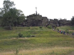 Nach einem ausgedehnten Schläfchen und einem Prasseln auf dem Zelt dachten wir uns: Warum im Regen am Duschcamp anstehen? Also ab ins Auto, nach Quedlinburg um dort festzustellen, dass das dort ansässige Schwimmbad erst ab 14 Uhr geöffnet hat. Wat nu sprach Zeus? Ab nach Halberstadt und dort in einer zauberhaften Sauna-und Badelandschaft ausgiebig geduscht und seine Notdurft…naja…Dixies sind halt für den Arsch. Bei der Pfandabgabe merkten wir, dass wir am Vorabend doch mächtig Gas gegeben hatten. Also Biervorräte aufgefüllt und ab zurück nach Ballenstedt, um endlich den großen Gegenstein zu erklimmen.