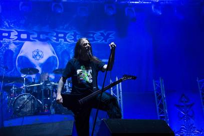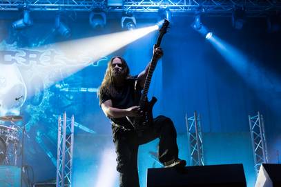 Da musste man weiter vorne nicht nur von links nach rechts schauen, sondern auch mal nach oben, wenn man Schlagzeuger Horgh bei der Arbeit zusehen wollte. Das machte allerdings das Mitbangen etwas schwieriger. Das aber nur am Rande, weil ansonsten HYPOCRISY ihr Set arsch-tight runter spielten und durch den recht Bass lastigen Sound, knallten ihre Hits „Eraser“ oder „Rosewell 47“ natürlich noch einen ticken derber. Jetzt waren meine Ohren endgültig frei geblasen, somit konnte ich mich fortan noch mehr auf gerstenhaltige Getränke konzentrieren.