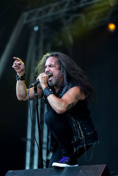 Den Anfang für unsere Truppe machten DEATH ANGEL. Sie hatten einen Hammer Sound und wohl daher auch richtig Lust zum Spielen. Somit sprang der Funke zum Publikum schon vom ersten Song („Thrown To The Wolves“) an über. Mit „Claws In So Deep“ folge noch ein Song neueren Datums, bevor die Bay Area Thrasher mit „Voracious Souls“ mal tief in ihrer Old-School Kiste kramten. Mir gefiel die heutige Show meiner alten Helden recht gut, wodurch ich mal gut auf Festival Betriebstemperatur gebracht wurde. Die Band harmonierte gut zusammen und durch den guten Sound klang auch alles aus einem Guss. Was ich beim heutigen Auftritt jedoch vermisste, war mein DEATH ANGEL Lieblingssong „Seemingly Endless Time“ (und überhaupt einer der besten Thrash Metal Songs!) vom besten DEATH ANGEL Album „Act III“, von dem sie heute auch sonst nichts spielten?! Nun ja, die Rund 40 Minuten Spielzeit hatte es trotzdem in sich und das episch lange „The Ultra-Violence / The Pack“ machte mich auch wieder glücklich. Das war jedoch kein Vergleich zum Männercamp Kollege Fritti. Der war inzwischen heiß wie Bratenfett und fing schon richtig an abzuschädeln.