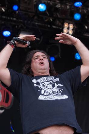Bevor die großen 4 des deutschen Thrash Metal ihre Aufwartung machen würden, starteten Dö und ich unsere musikalische Liveunterhaltung mit der Kyle Gass Band. Durch Tenacious D. dürfte Kyle Gass dem ein oder anderen schon ein Begriff sein. Wer nun meint Kyle ist ohne sein Sidekick Jack Black nichts wert, der hat keine Ahnung! Kyle und seine vier Jungs zündeten mittags um halb zwei ein Rock´n´ Rock Feuerwerk ab, das sich gewaschen hatte. Kyle Gass steht Jack Black im Punkto Entertainment in nichts nach. Äußerst unterhaltsam manövrierte er seine Band durch die Spielarten des Rock´n´Roll. Ob rockig und mit Blockflöte, oder in Mönchskutte zu Gospelklängen. Man wähnte sich regelrecht in einem 70er Roadmovie – geile Scheiße!