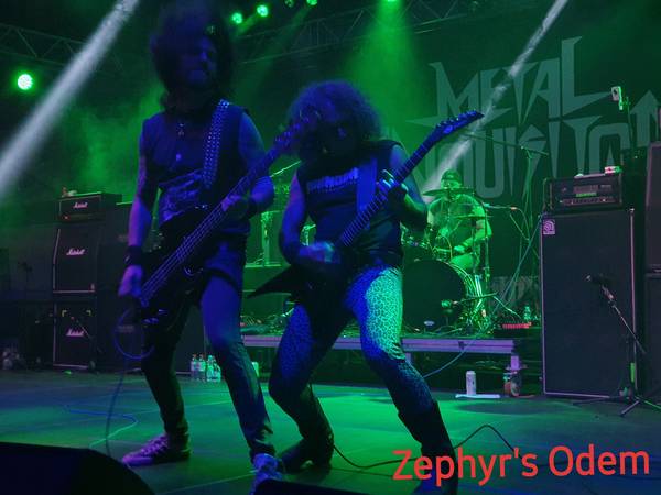 Erneut eine Premiere für mich, denn Metal Inquisitor hatte ich bislang live auch noch nicht vor den Lauschern und war mehr als angenehm überrascht, da es die Koblenzer locker und leicht schafften, den auf ihren Alben selbst auferlegten Standard Eins zu Eins auf die Bühne zu übertragen. Komischerweise war anfangs in der Halle noch recht wenig los, was sich im weiteren Verlauf allerdings recht zügig änderte. Zurecht, denn das Quintett legte richtig los und konnte nicht nur die Traditionalisten überzeugen. Sehr stark!