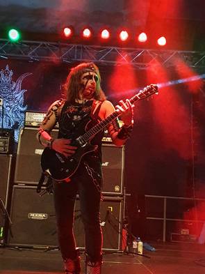 Das Gleiche gilt für meine Homies von Indian Nightmare, die sich seit ihrem ersten Eroberungsfeldzug in mein metallisches Herz beim Spacefest anno 2016 so richtig freigeschwommen haben und Die Welt im Sturm erobern. Dementsprechend voll war es vor der Bühne als Frontschreihals Poison Snake die Menge zum Bewegen animierte. Herrlicher oller Retro Speed, der mit einer solchen Hingabe zelebriert wird, ist es wert, immer wieder hochgelobt zu werden. Der Sound war wieder klasse, klar, differenziert und beide Gitarren waren perfekt abgemischt, so dass Granaten wie „Serpent’s eye" ihre volle Durchschlagskraft entfalten konnten. Das Auditorium ward jedenfalls angetan und verabschiedete die Jungs mit großem Beifall. Später fasste es Deaf Forever Chef Kühnemund treffend zusammen: „Ihr seid sympathisch, schreibt großartige Songs und genau SO müssen Metaller aussehen.“ Recht hat er!