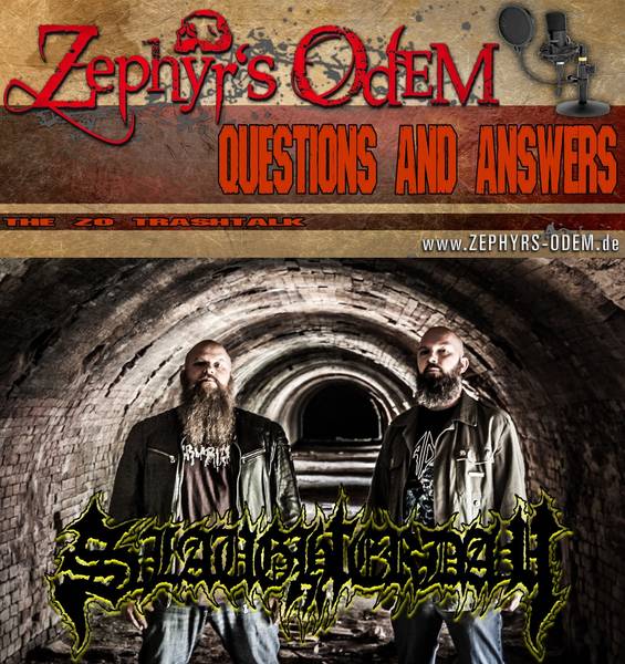 Wie viele Ostfriesen braucht man, um geilen Death Metal zu spielen? Zwei! Ihr sucht den Witz? Da gibt es keinen, denn Slaughterday, bestehend aus Sänger und Drummer Bernd Reiners und Jens Finger, der sich für die Saitenfraktion verantwortlich zeigt, brauchen keine doofen Kalauer, um sich zu präsentieren. Das schaffen sie hervorragend selber mit ihrem seit 10 Jahren großartig intonierten Todesstahl, der mit der nunmehr dritten Veröffentlichung „Ancient death triumph“ seinen absoluten Höhepunkt findet. Natürlich nutzte ich die Gelegenheit, um mit zwei gutgelaunten Musikern ein wenig zu plaudern und dabei auch das eine oder andere Mal herzhaft zu lachen.