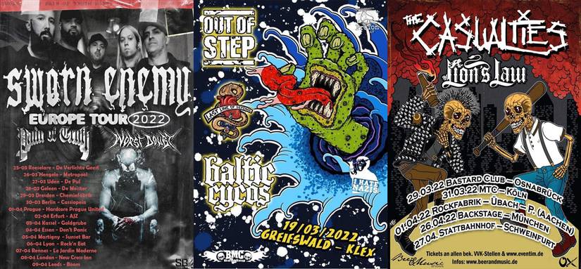 Bähm - erste, kleine Klubtouren scheinen wieder möglich zu sein. Da erfreut es mich gleich mal ein paar Dates verkünden zu können. Als da wären : SWORN ENEMY sind mit PAIN OF TRUTH und WORST DOUBT unterwegs. Einige Termine der Tour sind wohl erneut verschoben worden, bitte bemüht die Suchmaschine eures Vertrauens um Nachforschung derer. Im KLEX zu Greifswald findet nach ewig Zeiten auch mal wieder ein fettes HC – Event ( siehe Flyer ) statt. THE CASUALTIES sind ebenfalls für ein paar Shows in der Gegend.