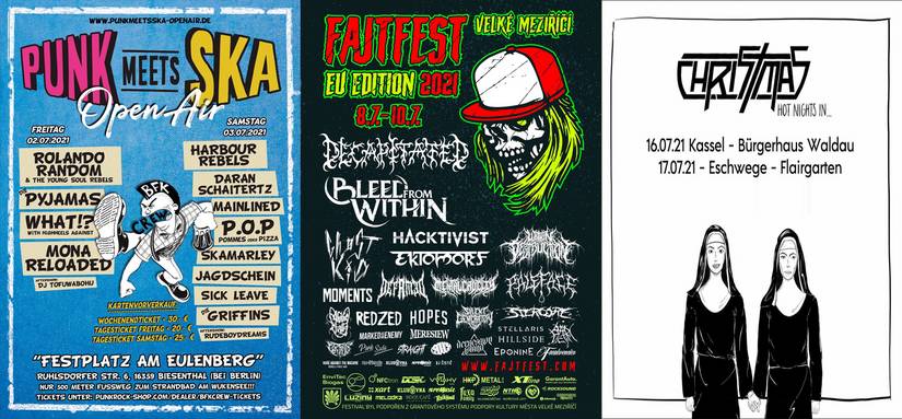 Es scheint diverse, mutige Veranstalter zu geben, die bereits in diesem Monat Konzerte bzw auch Festivals rocken wollen. Dazu gehören das PUNK MEETS SKA – OPEN AIR sowie das FAJT FEST in Tschechien. CHRISTMAS wollen ebenfalls zwei Shows spielen.