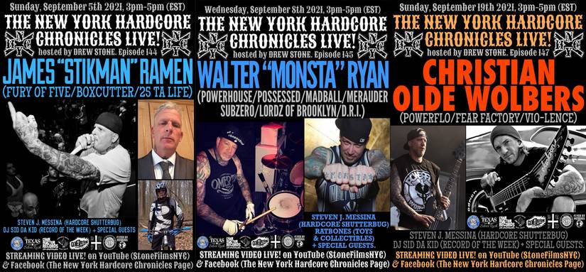 im September gibt es gleich zwei b.z.w drei relevante Dates. 05.09 - Episode 144 mit James „Stikman“ Ramen / FURY OF FIVE & 25 Ta LIFE und am 08.09 Episode 145 mit Walter „Monsta“ Ryan u.a. MERAUDER, MADBALL, SUBZERO und am 19.09 Episode 147 – mit Christian Olde Wolbers, der ja bekanntlich auch bei POWERFLO aktiv ist.