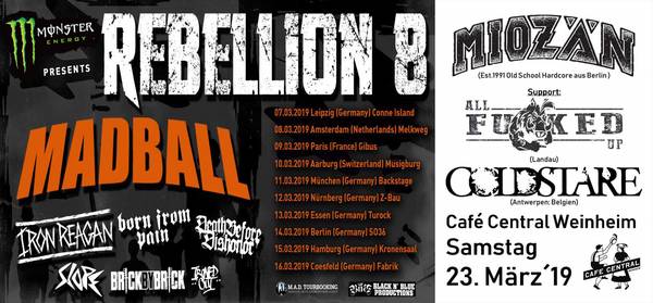 Trotz aller Trostlosigkeit gibt es aber einige Indoor Festivals, diese lesen sich wie folgt : REBELLION TOUR 8 z.B. mit MADBALL, BRICK BY BRICK, BORN FROM PAIN und DEATH BEFORE DISHONOR, THE DEATH TO FALSE METALCORE TOUR u.a. mit UNEARTH und DARKEST HOUR oder die LA FAMILIA TOUR. Diverse kleine Klubtouren gibt es aber auch im März zu verzeichnen : BLOOD YOUTH, TIDES DENIED, NATHAN GRAY ( BOYSETSFIRE ) oder MIOZÄN geben sich hier und da die Ehre. Leider wurde die Frühjahrestour von CAPSIZE auf Grund diverser sexuellen Anschuldigungen abgesagt. Die restlichen Tourdaten könnt ihr wie immer im Netz recherchieren.
