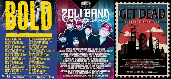 Diverse Klubs werden auch wieder fleißig für interessante Klubshows angesteuert. Die Navis haben diesen Monat programmiert : DEEZ NUTS, STICK TO YOUR GUNS, BOLD, RISE OF THE NORTHSTAR, ONE KING DOWN, WINDS OF PROMISE, M.O.R.A., SAFE, DOG EAT DOG, ZOLI BAND, BEING AS AN OCEAN reisen zusammen mit COUNTERPARTS und COMEBACK KID traveln mit NO TURNING BACK. Ansonsten tingeln noch SAMIAM, TARAKANY, GET DEAD, MILLENCOLIN, SNARESET, THE TIDAL SLEEP, DEFEATER, CASEY, SET IT OFF und I AM REVENGE mit BROTHERS IN ARMS durch unser Land. Hier nicht veröffentlichte Tourdaten : wie immer im irgendwo im Netz.
