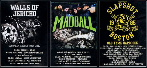 Die Orange County Boys von IGNITE schwirren noch für ein paar Gigs durch die Gegend. ENDZWECK, HIGH POWER, TURNSTILE, DEFEATER, die Bollokönige HATEBREED und WALLS OF JERICHO geben sich inside die Ehre. Die übermächtigen TERROR lassen es auch wieder krachen. Die unschlagbaren SLAPSHOT und MADBALL walzen dito durch unser Land und werden mit Sicherheit für ausgiebigen Schweißregen sorgen. DESOLATED hegen leider den Wunsch das zeitliche zu segnen und begeben sich auf eine fette Abschiedstour.