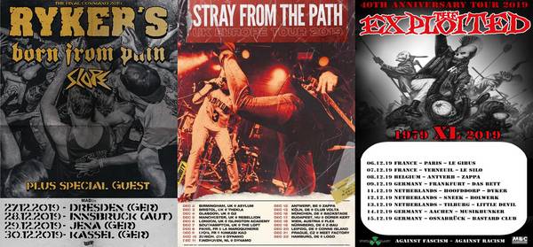 Mit den Klubtouren sieht es da schon etwas besser aus. Es sind ein paar wirkliche Leckerlis dabei. Zum Jahresende lassen es die RYKER´S mit BORN FROM PAIN nochmal ordentlich krachen, BOYSETSFIRE schwirren mit RAISED FIST zu ihrem 25. Jubiläum durchs Land. 40 ANNIVERSARY -THE EXPLOITED, STRAY FROM THE PATH, DIE SKEPTIKER, OFF THE HOOK, KNOCKED LOOSE mit MALEVOLENT und die Rüpel von M.O.D. geben ebenfalls noch ein paar Konzerte. Hier nicht veröffentlichte Tourdaten : wie immer zu finden irgendwo im WWW.